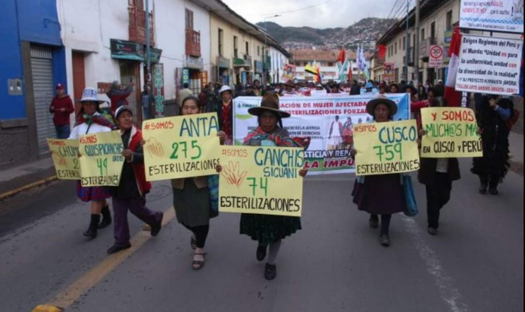El Plan Nacional de Salud Reproductiva y Planificación Familiar (PNSRPF) de Perú fue una iniciativa del presidente Alberto Fujimori en la década de los 90. El discurso neoliberal de Fujimori había prometido desarrollo y prosperidad, pero, viendo que las mejoras no llegaban, el equipo de Gobierno decidió fabricar sus propios datos favorables. Con el objetivo de reducir la población peruana pobre e incrementar así el PIB per cápita, el régimen de Fujimori ordenó la esterilización de aproximadamente 300.000 personas —el 90% mujeres—, especialmente durante el período de 1996 a 2001. Estas esterilizaciones se realizaron de manera velada, sin informar a las víctimas y sin consentimiento previo en aproximadamente el 90% de los casos, y afectaron especialmente a mujeres indígenas de las zonas rurales más devastadas por la pobreza y por el conflicto entre las autoridades y el grupo terrorista Sendero Luminoso.
